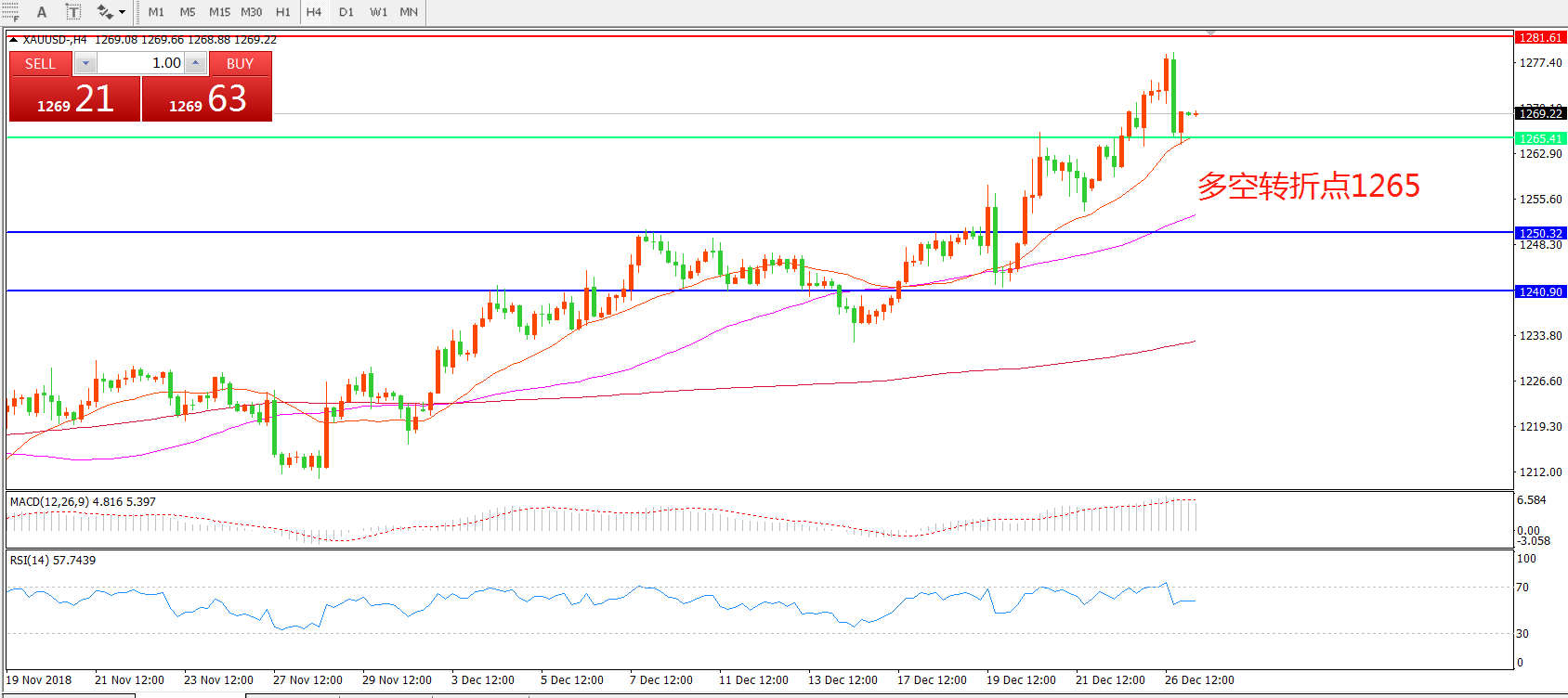 多空转折点:1265.00