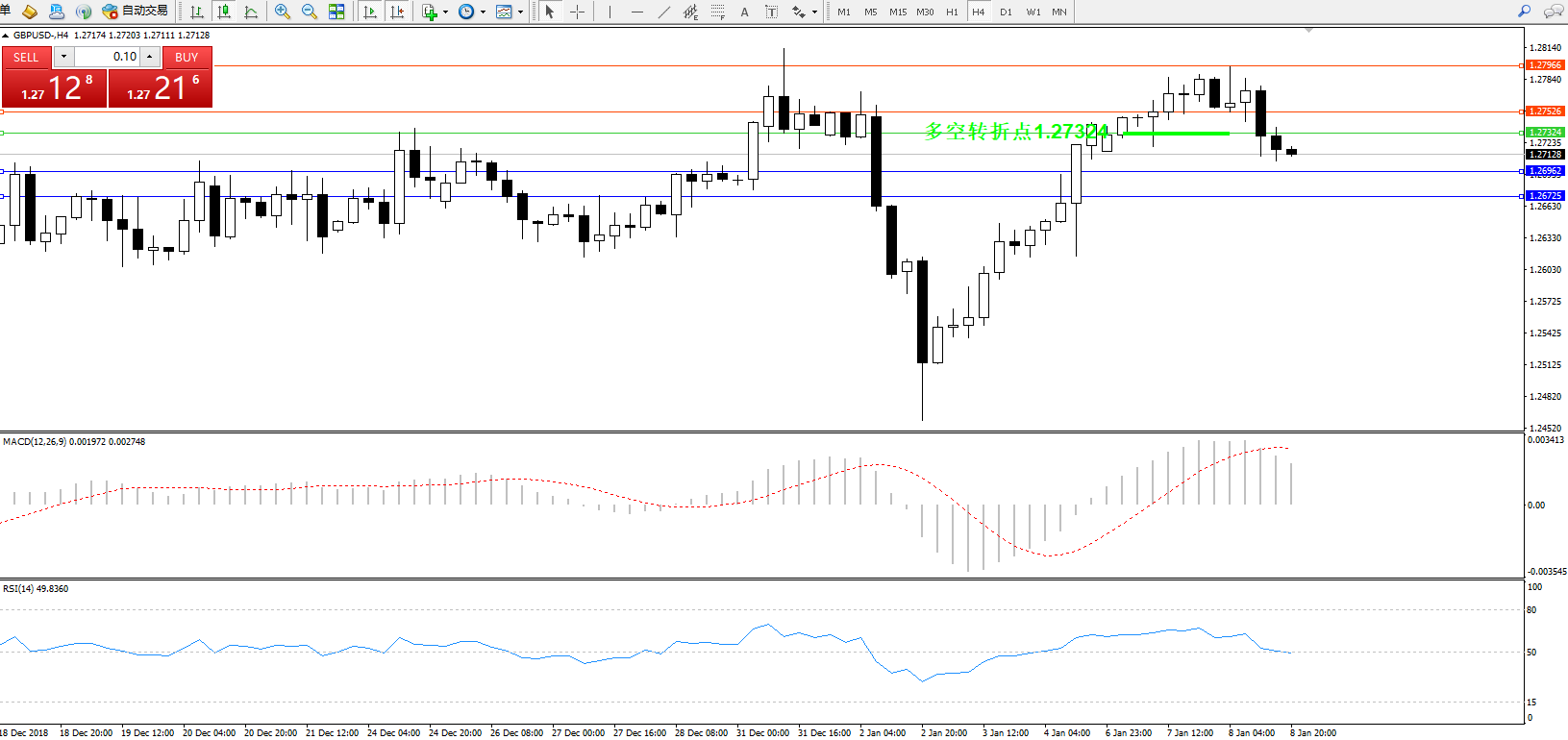 交易策略:1.27324下方看跌,目标1.26926、1.26725