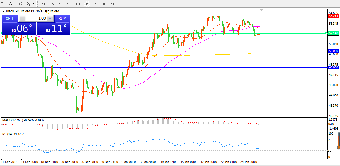 交易策略:在52.00之下看跌,目标50.00  48.00