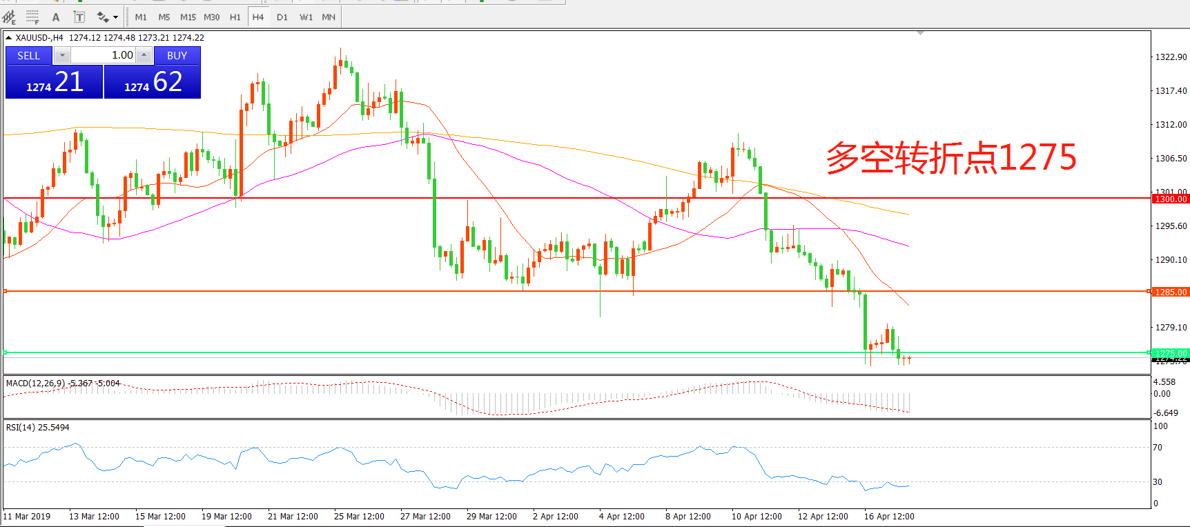 多空转折点:1275.00