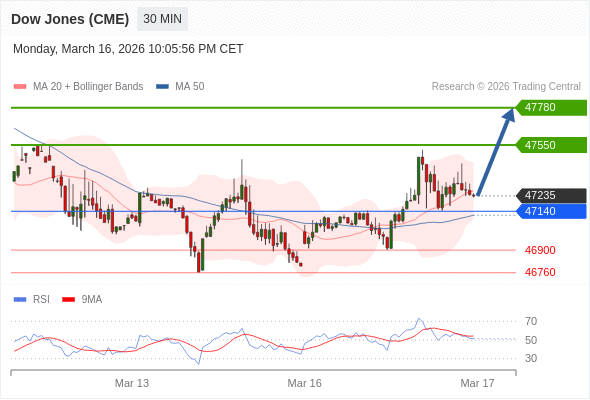 在 47140 之上,看涨,目标价位为 47550 ,然后为 47780 。