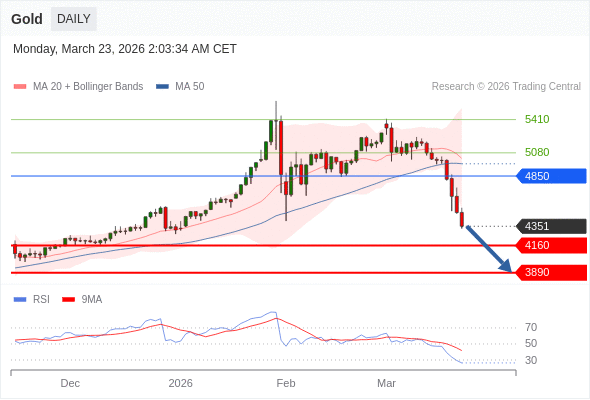 在 4850 之下,看跌,目标价位为 4160 ,然后为 3890 。