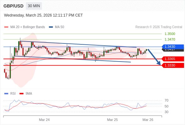 英镑/美元 当日内: 短期关键阻力位在1.3430。