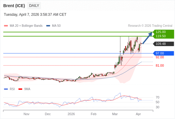 布伦特原油 (ICE) (M6) 短线: 在97.00之上,看涨。