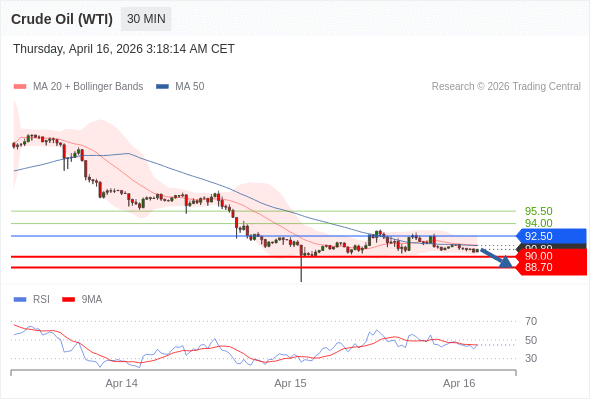 交易策略: 在 92.50 之下,看跌,目标价位为 90.00 ,然后为 88.70 。