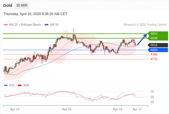 在 4800 之上,看涨,目标价位为 4838 ,然后为 4853 。
