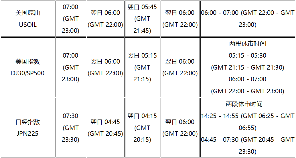 各产品交易时间将调整为冬令时间